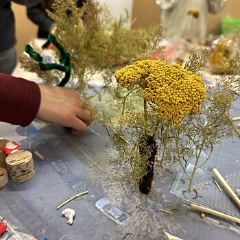 Mehr …Die grauen Baustellencontainer hinter dem Spielplatz der Herrenschule haben wir in sattes Blättergrün getaucht und mit Polsterungen zum Spielen ausgestattet.