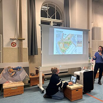 Mehr Details darüber, was genau entstehen soll und worauf Sie sich freuen können, finden Sie in unserem Newsbeitrag vom 3.11. „Ein neuer Quartiersplatz“. Margareta Rothe vom Landschaftsarchitekturbüro Uniola gab allen Beteiligten einen Einblick in die geplante Gestaltung.